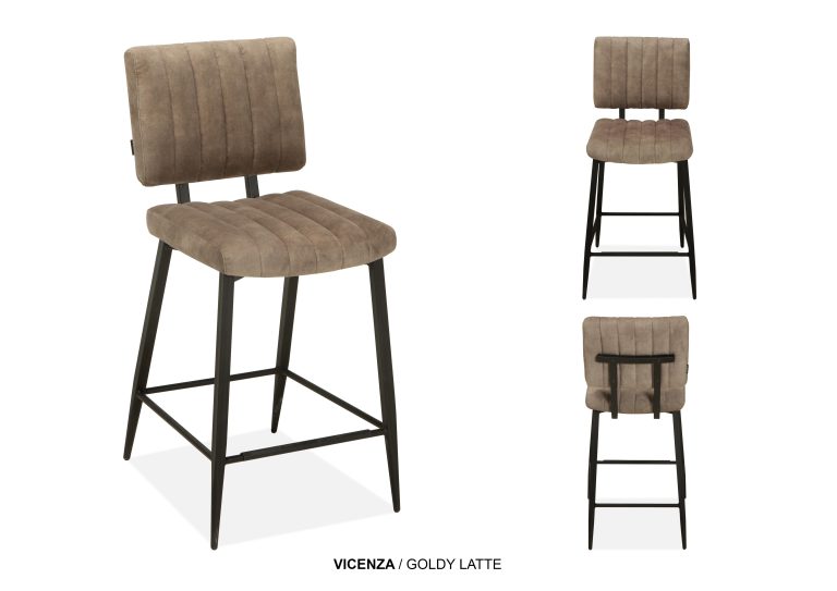 Vicenza – Barstoel – Vicenza barstoel is verkrijgbaar in diverse kleuren stof:– Goldy Anthracite– Goldy Latte– Goldy Sand